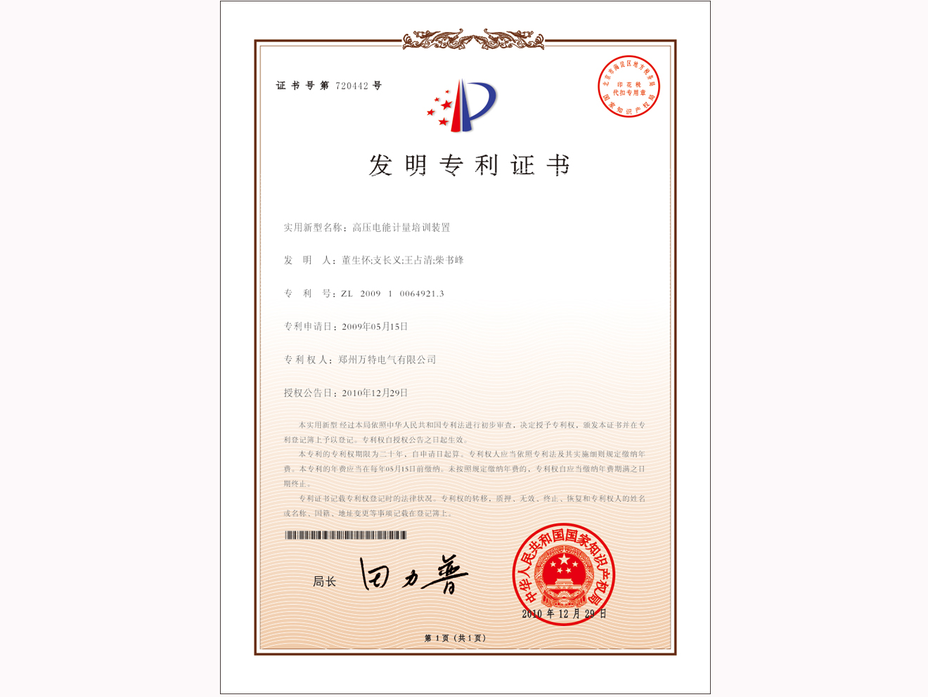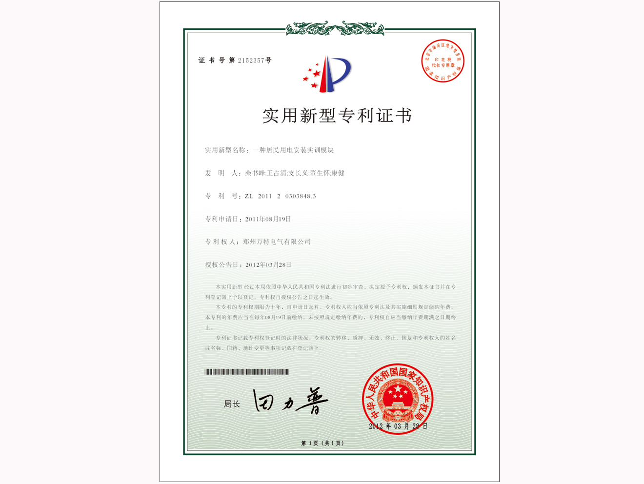 公司實(shí)用新型專(zhuān)利證書(shū)