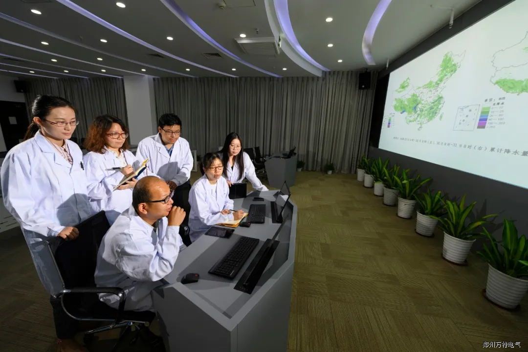 中國電科院數(shù)值天氣預(yù)報(bào)團(tuán)隊(duì)在實(shí)驗(yàn)室研討電力氣象預(yù)報(bào)結(jié)果