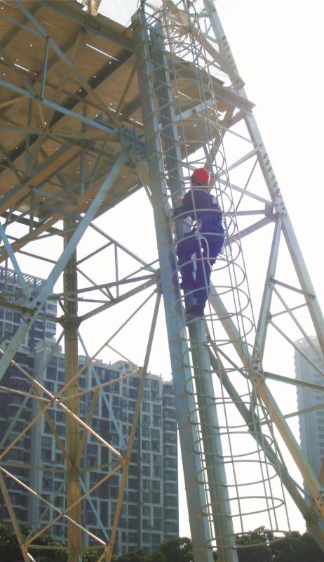 學(xué)員親身體驗項目。以親身體驗垂直登塔、爬梯的方式,使學(xué)員認識做好防止高空墜落措施的 重要性,掌握登高作業(yè)的正確方法。